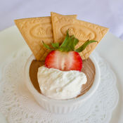 pan-fried crab cake with mixed greens & served with lemon zest sour cream